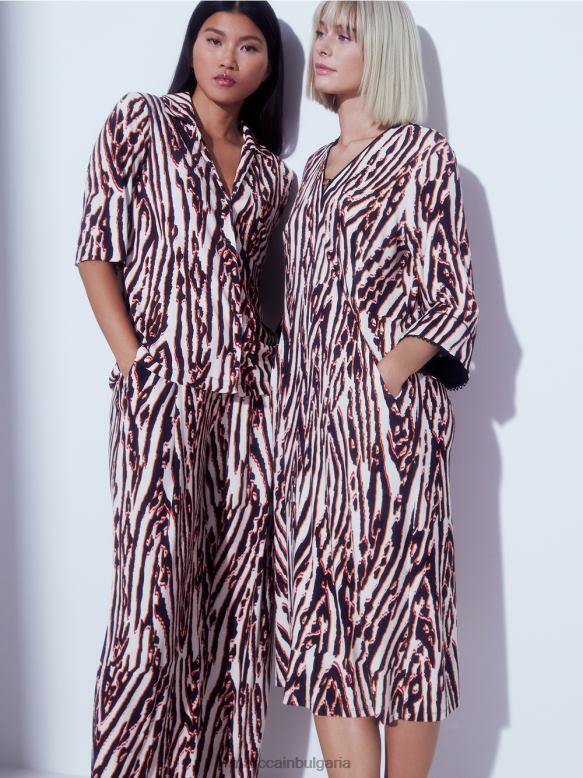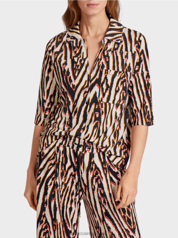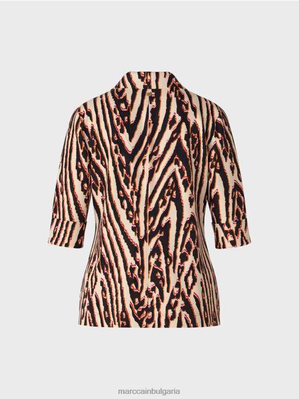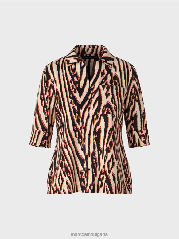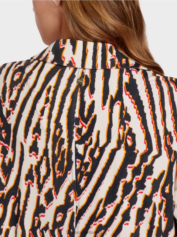 простият дизайн на тази блуза я прави перфектната витрина за деконструирания и пикселизиран принт на животинска козина . жизненият ефект на цвета и дизайна на джоба на гърдите с кръпка и копчетата в метална рамка става очевиден само на втори поглед.